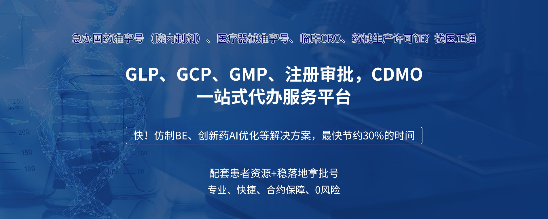 包含:法规注册咨询、体系辅导咨询、综合CRO(GLP、GCP、GMP)、注册审批、检验检测辅导等。CDMO一站式代办服务平台。团队成员均有多年行业从业经验,实战经验丰富。对法规理解透彻,确保第一时间处理和解决企业的痛点问题。