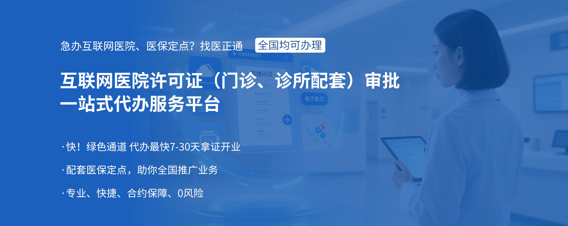 核心团队由资深医疗行业顾问、法律专家及前卫生行政部门审核人员组成,深耕医疗资质代办,累计为[2000]家医疗机构(诊所、门诊、医院等)及药械(产品、门店、公司、项目等)提供了高效、合法的资质解决方案。